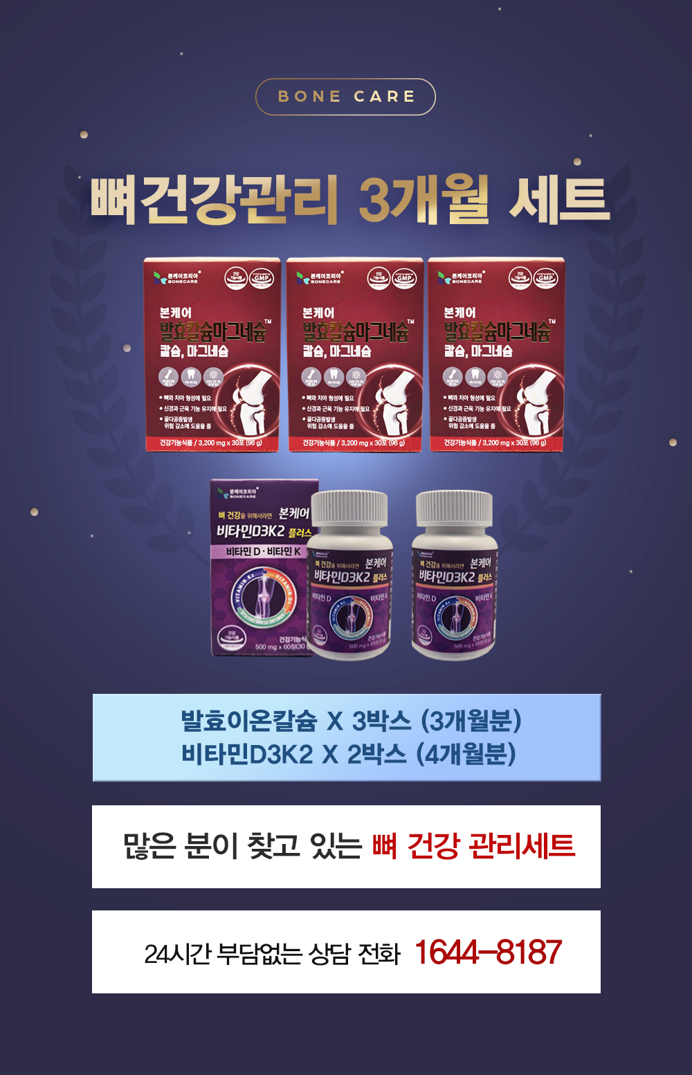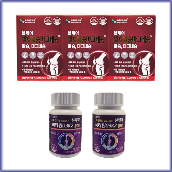 본케어 발효칼슘마그네슘 이온칼슘 이온칼맥 3박스 + 비타민D3K2 2통 (뼈 건강 3개월 세트)