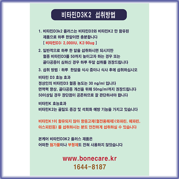 제품명 본케어 비타민D3K2 플러스