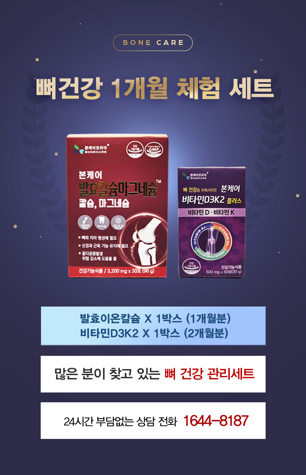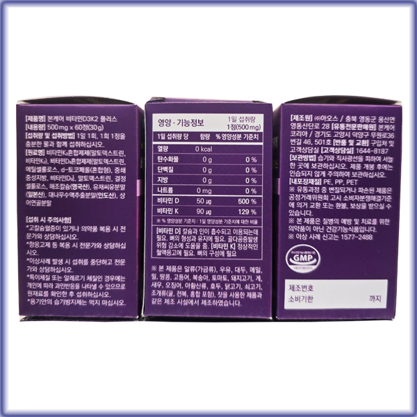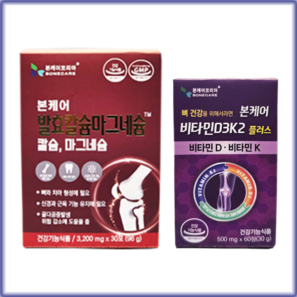 제품명 본케어 발효칼슘마그네슘 이온칼슘 이온칼맥 1박스 + 비타민D3K2 1통 (뼈 건강 1개월 세트)