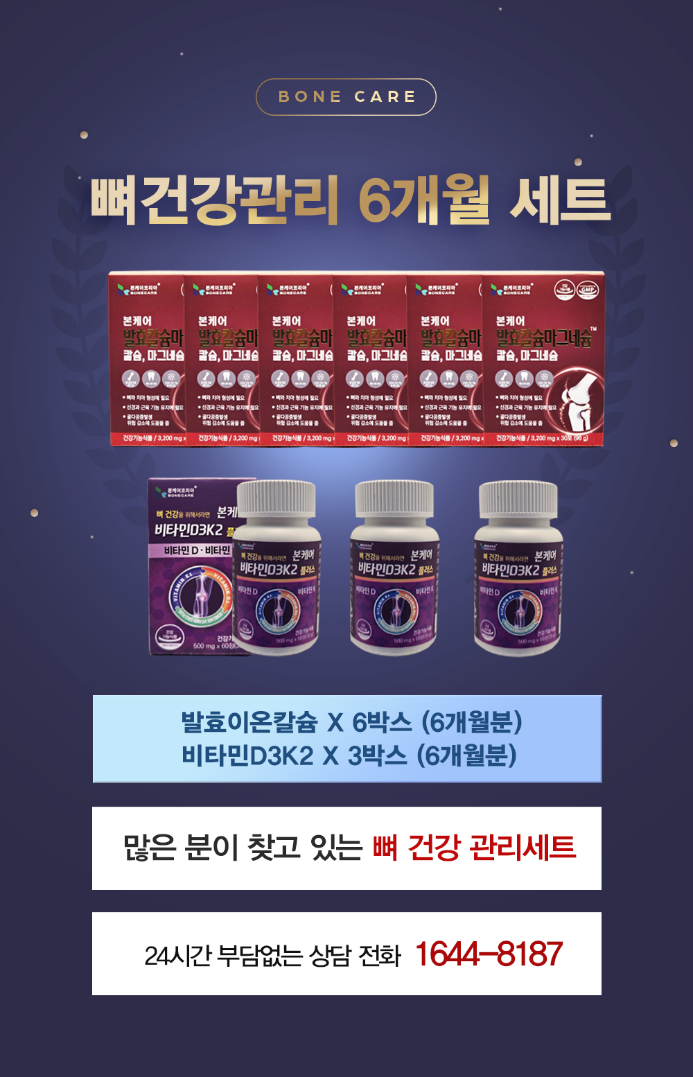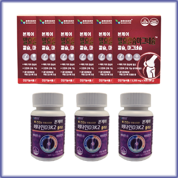 본케어 발효칼슘마그네슘 이온칼슘 이온칼맥 6박스 + 비타민D3K2 3통 (뼈 건강 6개월 풀세트)