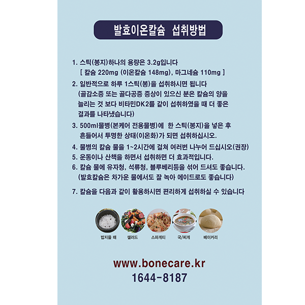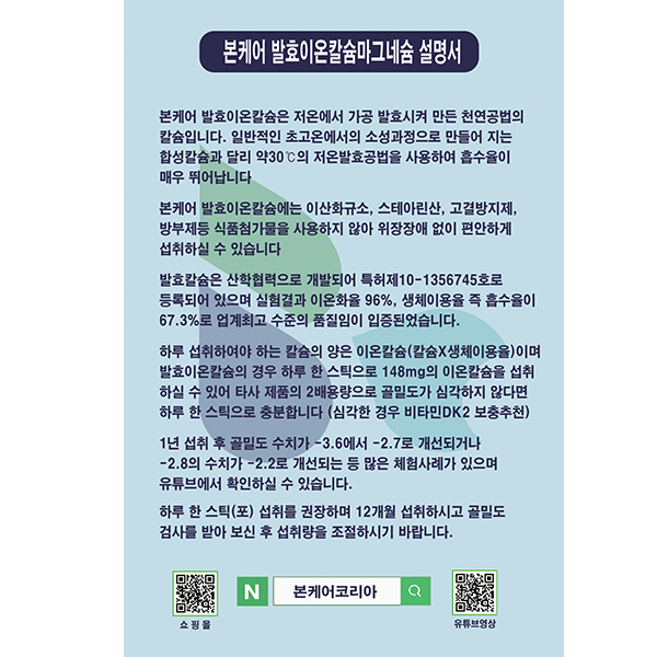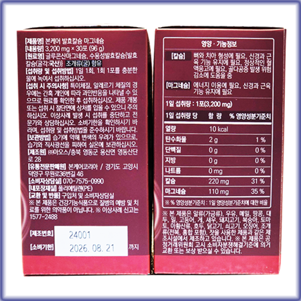 제품명 본케어 발효칼슘마그네슘 이온칼슘 이온칼맥 3200mg 30포 (1개월분)
