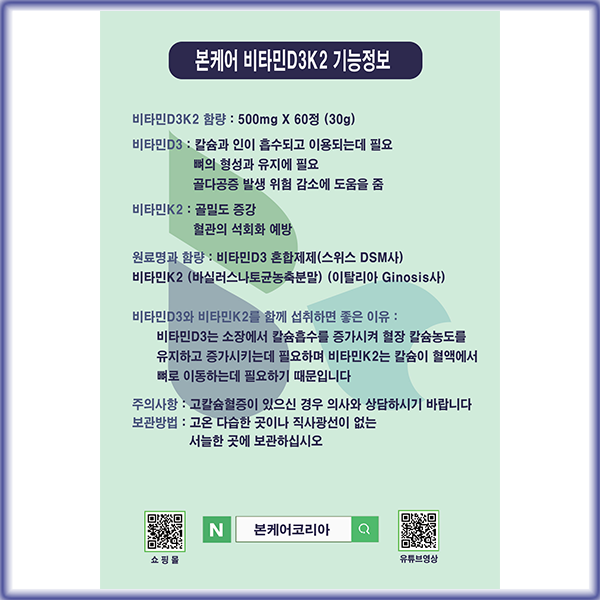 제품명 본케어 비타민D3K2 플러스