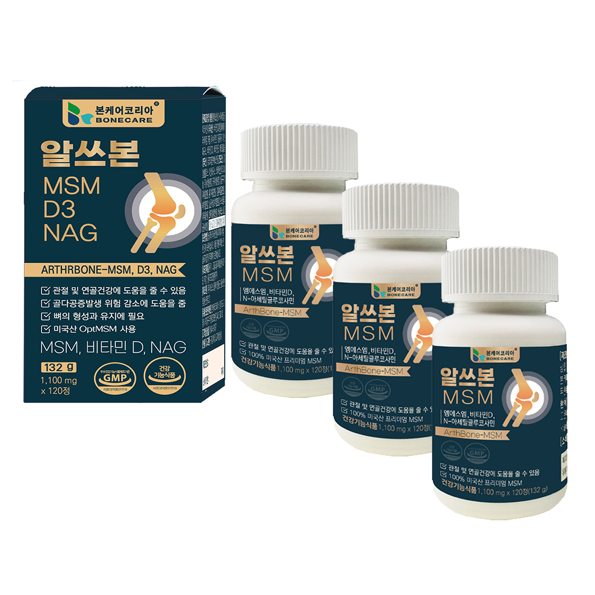 본케어 알쓰본 MSM D3 NAG 콘드로이친 아쿠아미네랄 120정